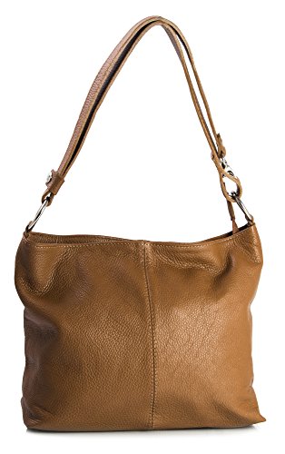 Best Seller! Big Handbag Shop Womens Genuine Italian Leather Unique Shoulder Strap Medium Bag (Medium Tan) Review