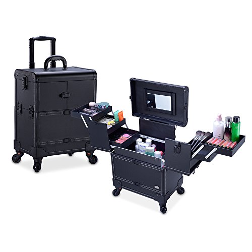 Best Seller! MUA Limited Professional 4 Wheeled Makeup Trolley, Locking Cosmetic Storage Case with Pullout Drawers, Black Review